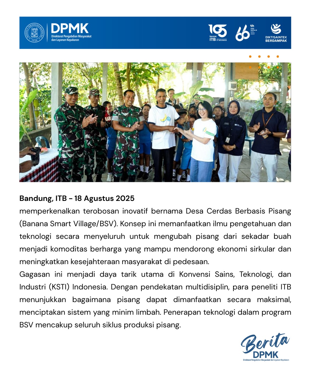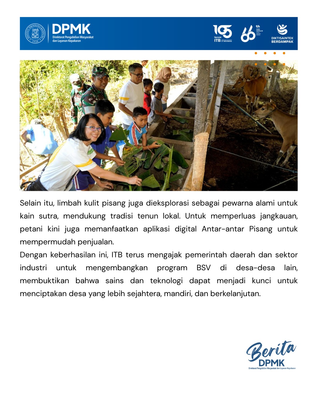 With this success, ITB continues to invite local governments and the industrial sector to develop the BSV program in other villages, proving that science and technology can be the key to creating more prosperous, independent, and sustainable villages.