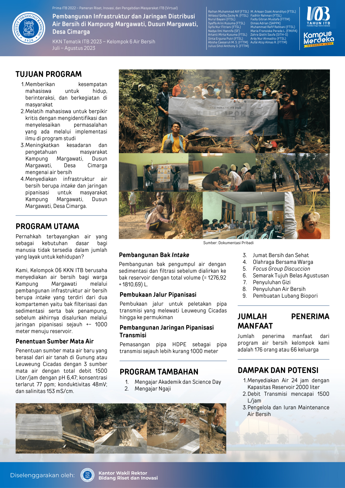 Pembangunan ini tidak hanya mencakup pemenuhan kebutuhan dasar masyarakat akan air bersih, tetapi juga memberikan dampak positif terhadap mahasiswa sebagai ruang belajar dan turun serta langsung ke masyarakat.
