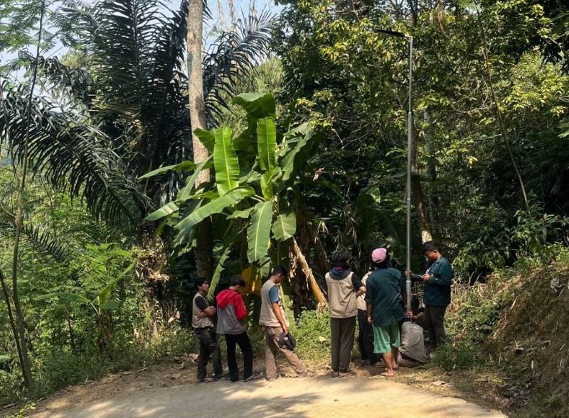 A total of 15 PJU units were installed across four key areas: 3 units in Kampung Wangun Tonggoh, 5 units on the route to Kampung Cibodas, another 3 units along the way to Kampung Wangun Tonggoh, and 4 units towards Dusun 1. The installation focused on sharp turns and intersections to alert drivers and encourage cautious driving. These lights utilize solar panels as their power source, operating at 100 watts but running at 50 watts under normal conditions, increasing when the motion sensor detects movement within a 3-4 meter radius.