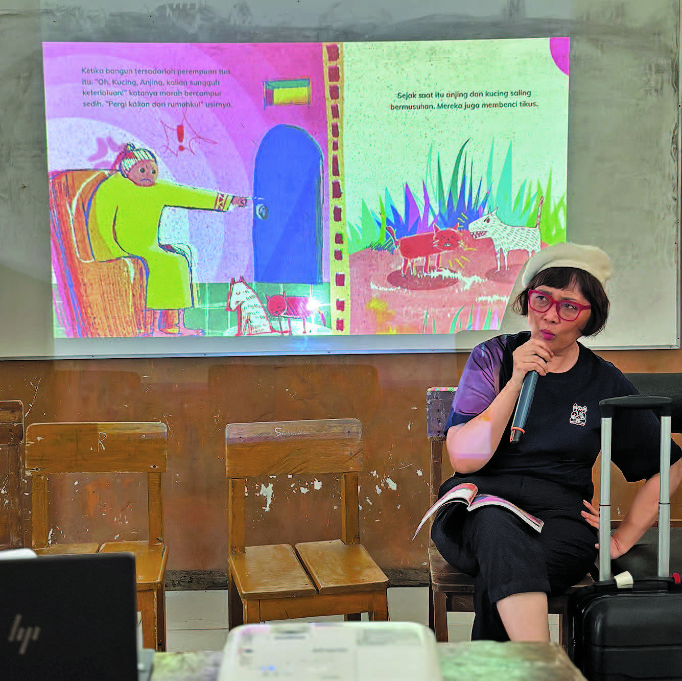 Menanggapi hal ini, tim pengabdian masyarakat dari Fakultas Seni Rupa dan Desain (FSRD) Institut Teknologi Bandung menyelenggarakan kegiatan “Berpetualang dalam Literasi Visual” di SDN Sukamaju, Desa Sukamaju, Kecamatan Sukatani, Kabupaten Purwakarta. Kegiatan yang diketuai oleh Dr. Elsa Silvia Nur Aulia, M.Pd. ini bertujuan untuk memperkenalkan read aloud sebagai metode pembelajaran yang tidak hanya memperkuat literasi visual, tetapi juga menjadi sarana mengenalkan kekayaan budaya Indonesia kepada siswa sekolah dasar.