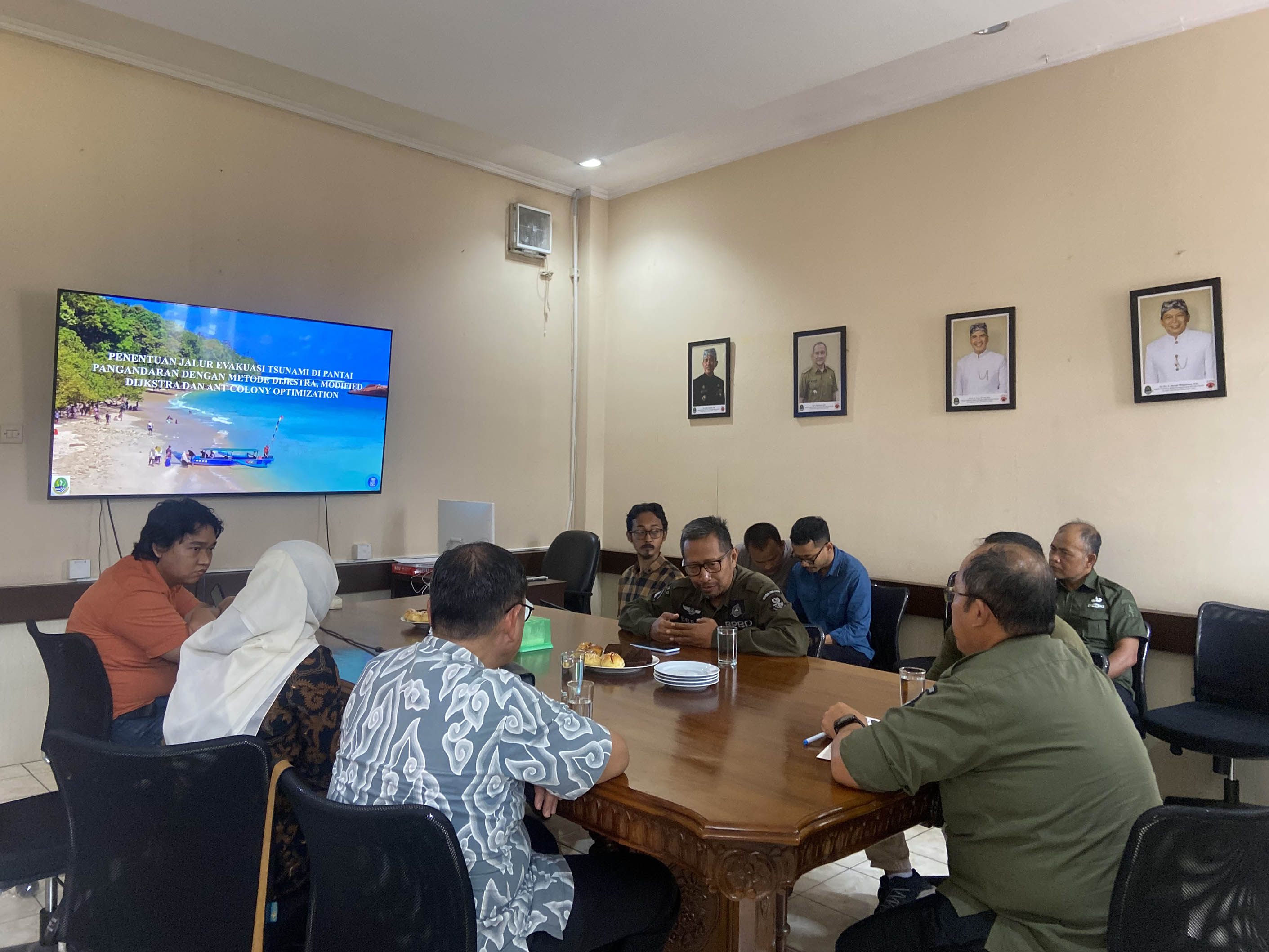 Pada kegiatan ini dipaparkan jalur evakuasi yang diperoleh menggunakan Algoritma Dijkstra, Modified Dijkstra, dan ACO serta saran untuk letak zona evakuasi baru agar dapat menampung keramaian di beberapa node. Informasi jalur evakuasi dapat diakses melalui poster yang dipasang pada beberapa tempat strategis di Kabupaten Pangandaran. Informasi jalur evakuasi ini juga dapat diakses melalui video yang telah diunggah ke akun youtube. Sebelumnya jalur evakuasi yang diperoleh menggunakan Algoritma Dijkstra, Modified Dijkstra, dan ACO serta saran untuk letak zona evakuasi baru ini juga telah dipaparkan di hadapan Kepala Bidang Pencegahan dan Kesiapsiagaan, Badan Penanggulangan Bencana Daerah Pemerintah Daerah Provinsi Jawa Barat, Edy Heriyadi pada Selasa, 12 Agustus 2025.