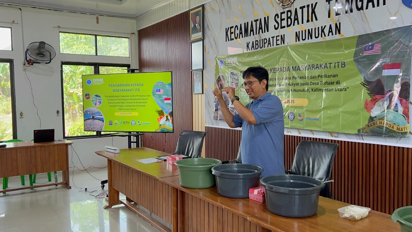 Sebatik, 8–9 Agustus 2025 — Institut Teknologi Bandung (ITB) bersama Universitas Borneo Tarakan (UBT) melaksanakan program pemberdayaan masyarakat di Desa Aji Kuning, Kecamatan Sebatik Tengah, Kabupaten Nunukan, Kalimantan Utara. Kegiatan ini menggandeng Kelompok Tani Tapal Batas, Kelompok Wanita Tani (KWT) Mawar, stakeholder pemerintah kecamatan, serta Dinas Pertanian setempat. Sebatik adalah wilayah perbatasan yang berbagi daratan langsung dengan Malaysia, dengan tantangan besar dalam hal keterbatasan akses transportasi dan logistik. Banyak kebutuhan pokok yang harus didatangkan dari wilayah besar seperti Jawa dan Sulawesi, bahkan sebagian lebih mudah dipasok dari negara tetangga. Kondisi ini membuat masyarakat Sebatik berupaya memaksimalkan potensi lokal agar dapat mandiri secara pangan dan ekonomi.