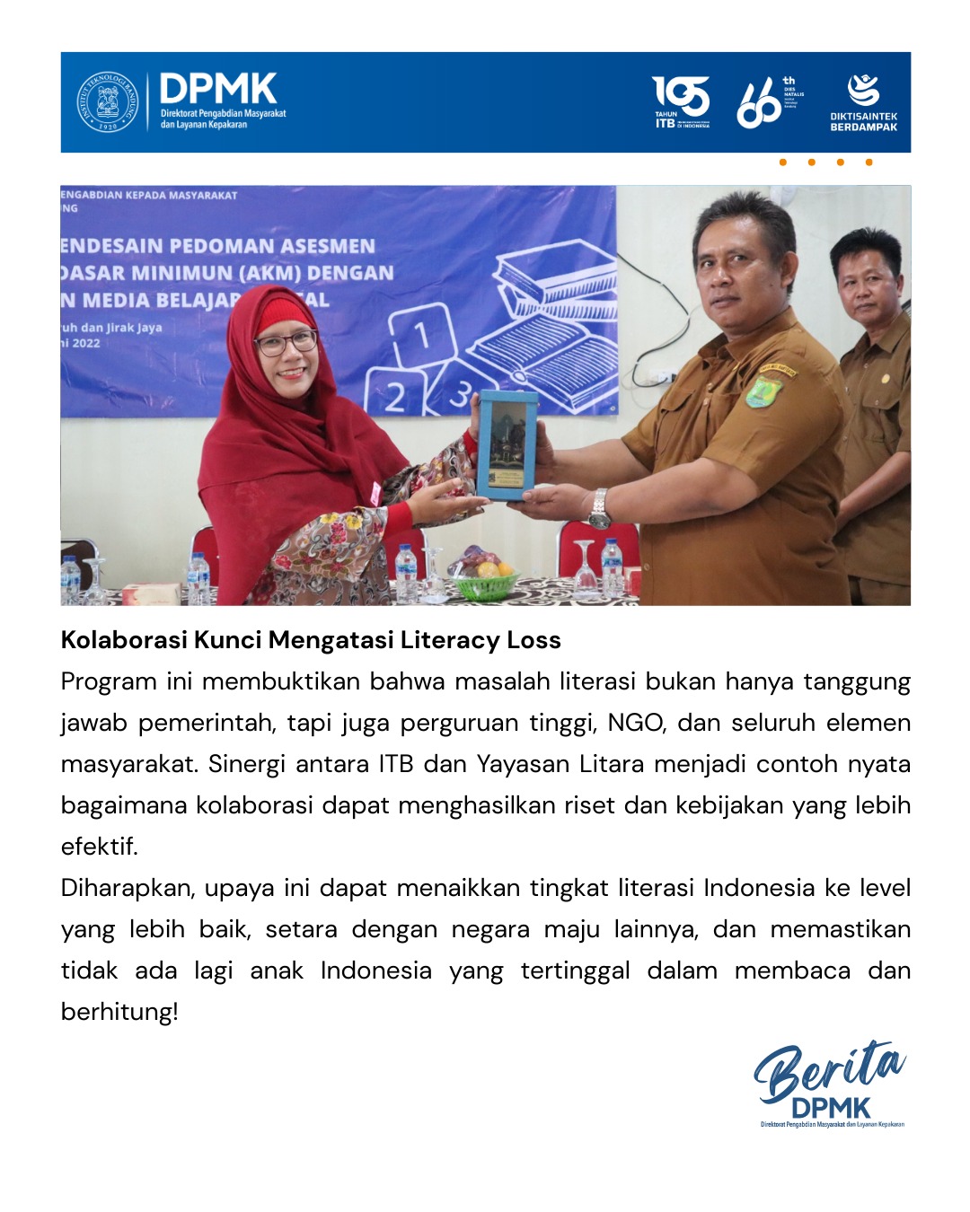 Program ini membuktikan bahwa masalah literasi bukan hanya tanggung jawab pemerintah, tapi juga perguruan tinggi, NGO, dan seluruh elemen masyarakat. Sinergi antara ITB dan Yayasan Litara menjadi contoh nyata bagaimana kolaborasi dapat menghasilkan riset dan kebijakan yang lebih efektif.