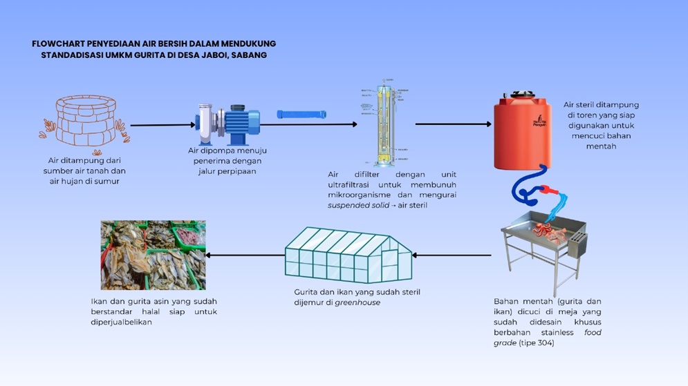 Kunci keberhasilan mereka terletak pada satu hal mendasar namun krusial: akses terhadap air bersih yang memenuhi standar higienis. Melalui kegiatan pengabdian masyarakat yang melibatkan berbagai pihak, Poklahsar Jaboi dibekali fasilitas dan pendampingan intensif untuk menerapkan proses pencucian dan pengolahan produk yang bersih dan sesuai standar kesehatan.