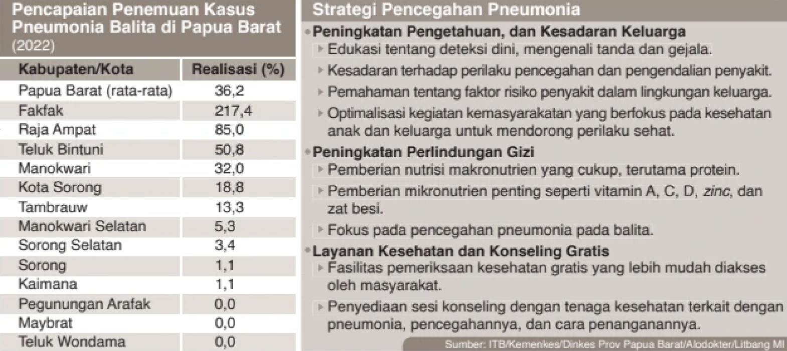 Masalah pneumonia merupakan tanggung jawab semua pihak, bukan hanya dinas Kesehatan. Lolaborasi menjadi salah satu hal yang harus dilakukan. Tim ITB bekerja sama dengan Universitas Victory Sorong, serta tenaga kesehatan dari Puskesmas Kalamono melalukan upaya pencegahan inveksi pneumonia di Kabupaten Sorong, Provinsi Papua Barat.