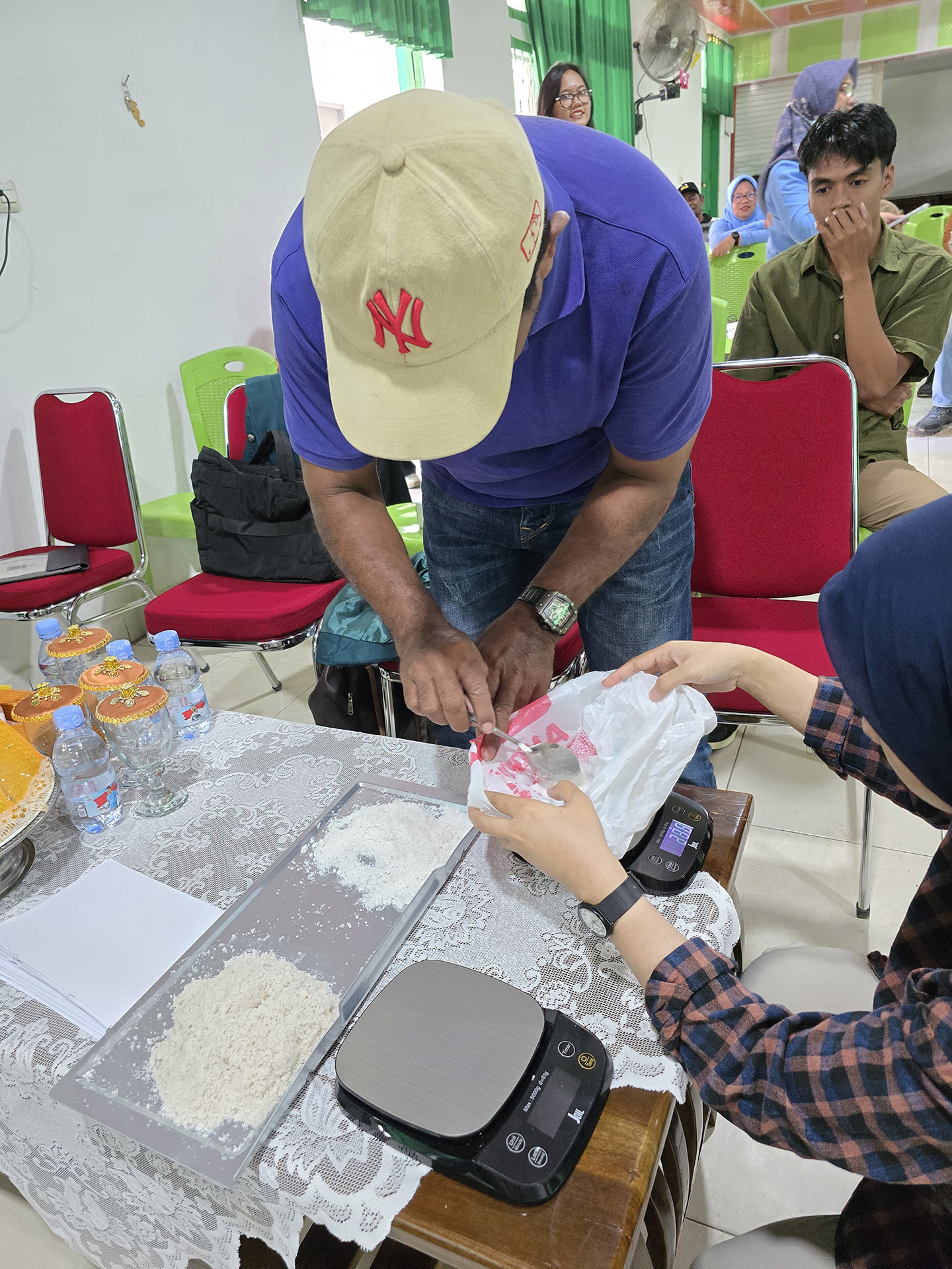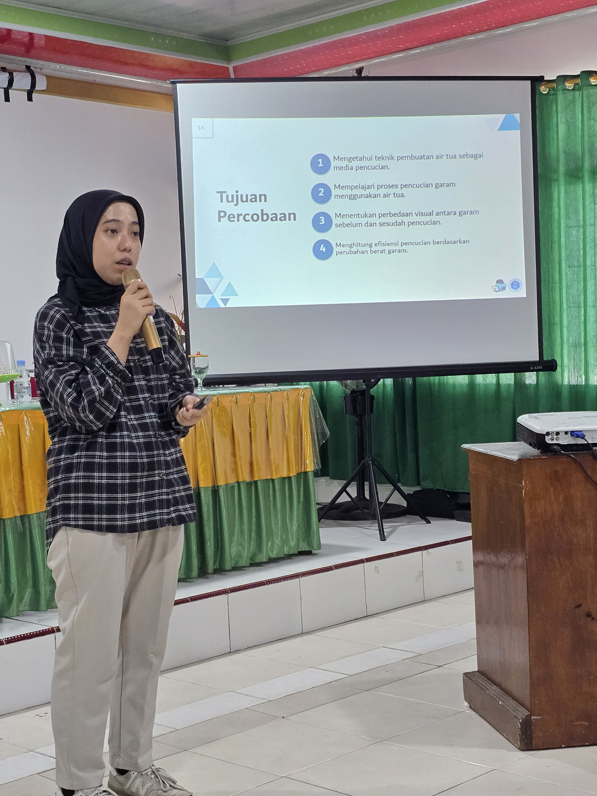 Proses pelatihan mencakup langkah-langkah praktis, seperti: (1) Pembuatan Air Tua, dengan garam kasar ditimbang (sekitar 300 gram) dan dilarutkan dalam 1 liter air bersih. Larutan kemudian didiamkan hingga bening, dan densitasnya dicek menggunakan Baume meter. (2) Pencucian Garam, dengan garam yang akan dicuci ditimbang (sekitar 500 gram) dan dicuci dengan air tua. Garam kemudian digerus hingga lebih halus dan dicuci kembali dengan air tua. (3) Penambahan Iodium dan Pengeringan, setelah dicuci, garam diletakkan di nampan dan disemprotkan larutan kalium iodat 30 ppm secara merata. Garam kemudian dijemur hingga kering sempurna.