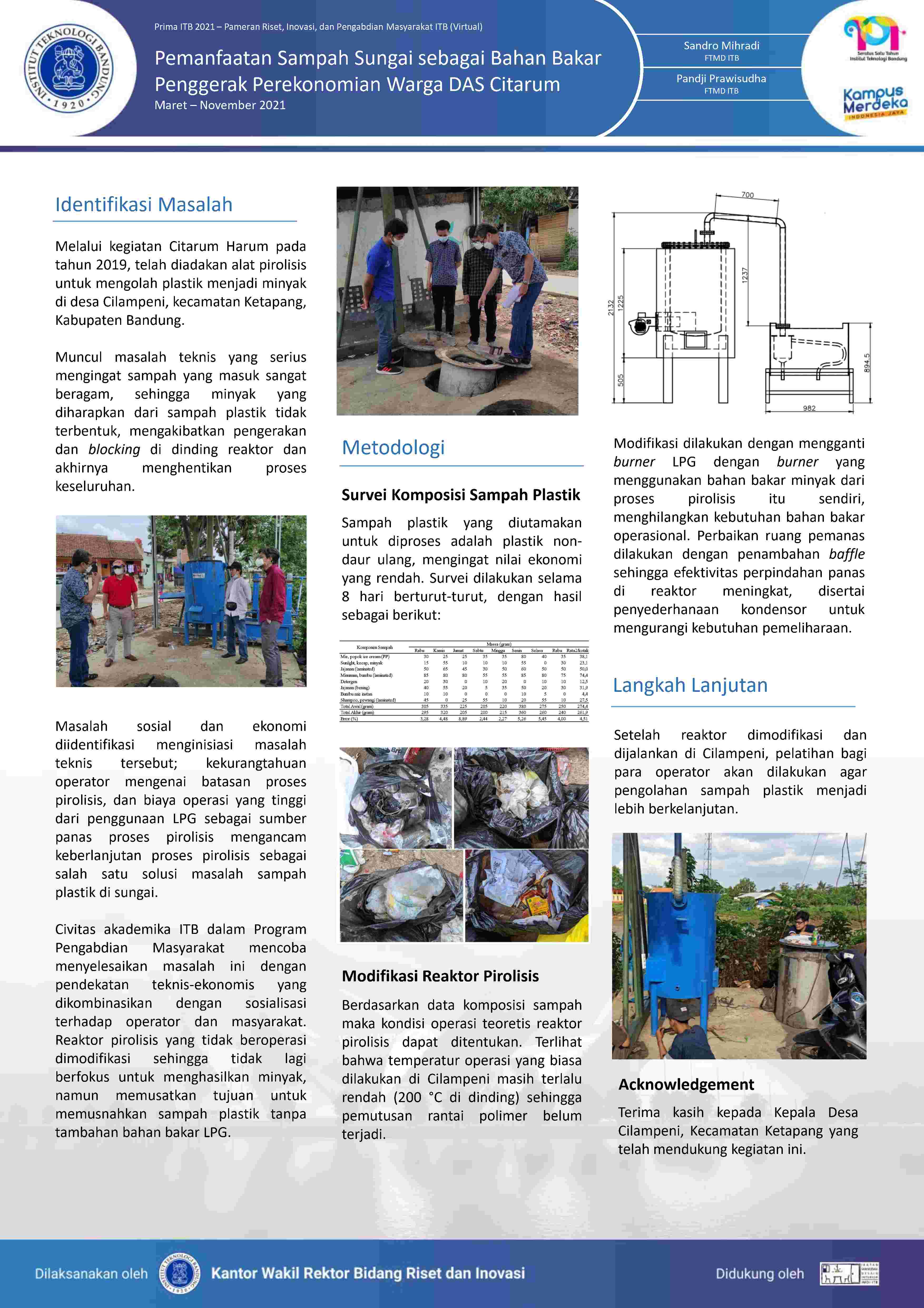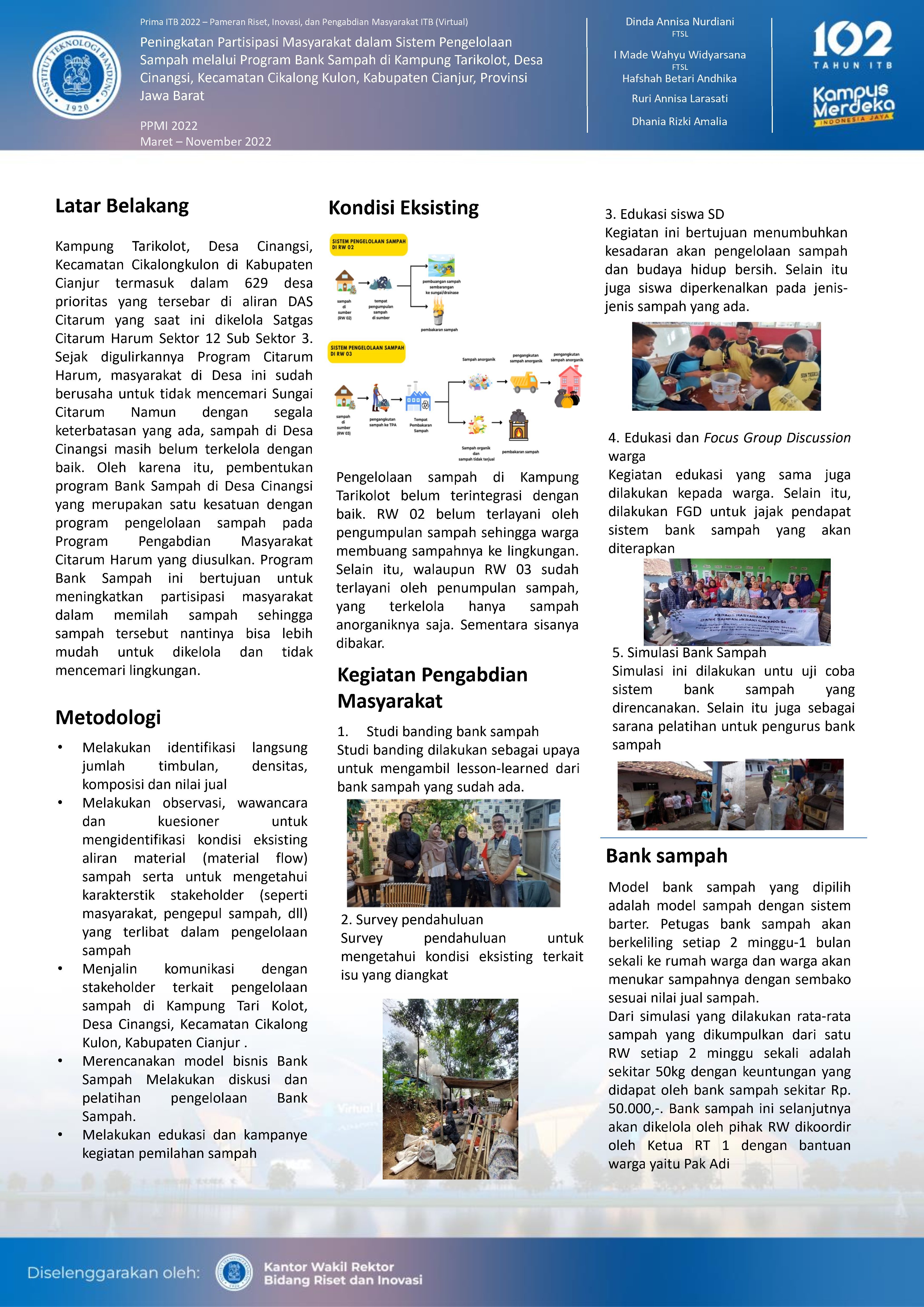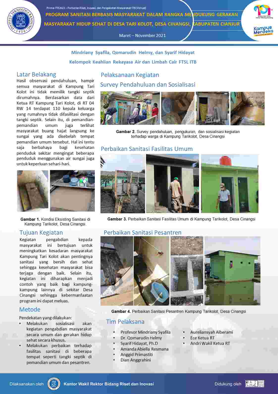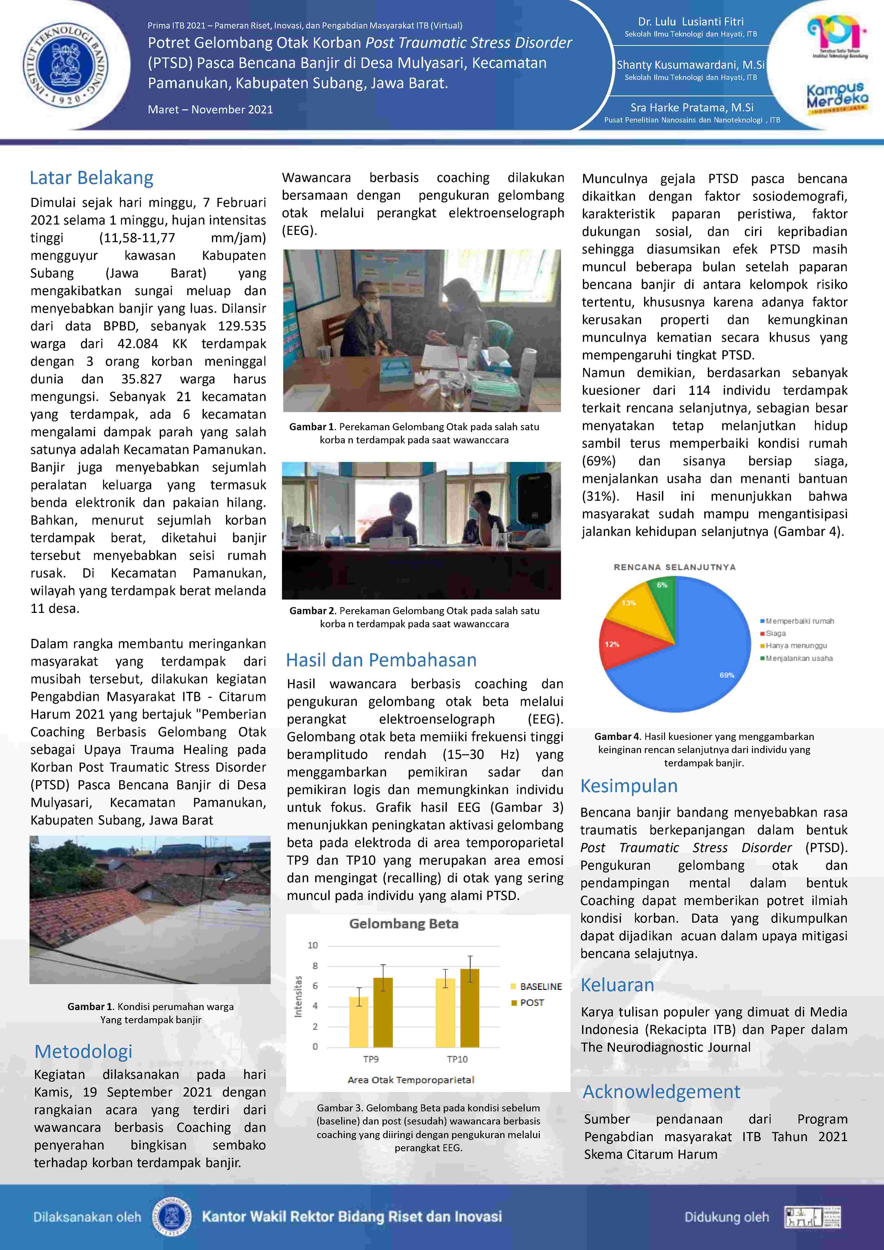 Kegiatan yang dilaksanakan tahun 2021 ini merupakan kelanjutan dari kegiatan yang telah didanai oleh Program Pengabdian Masyarakat ITB pada tahun 2020.