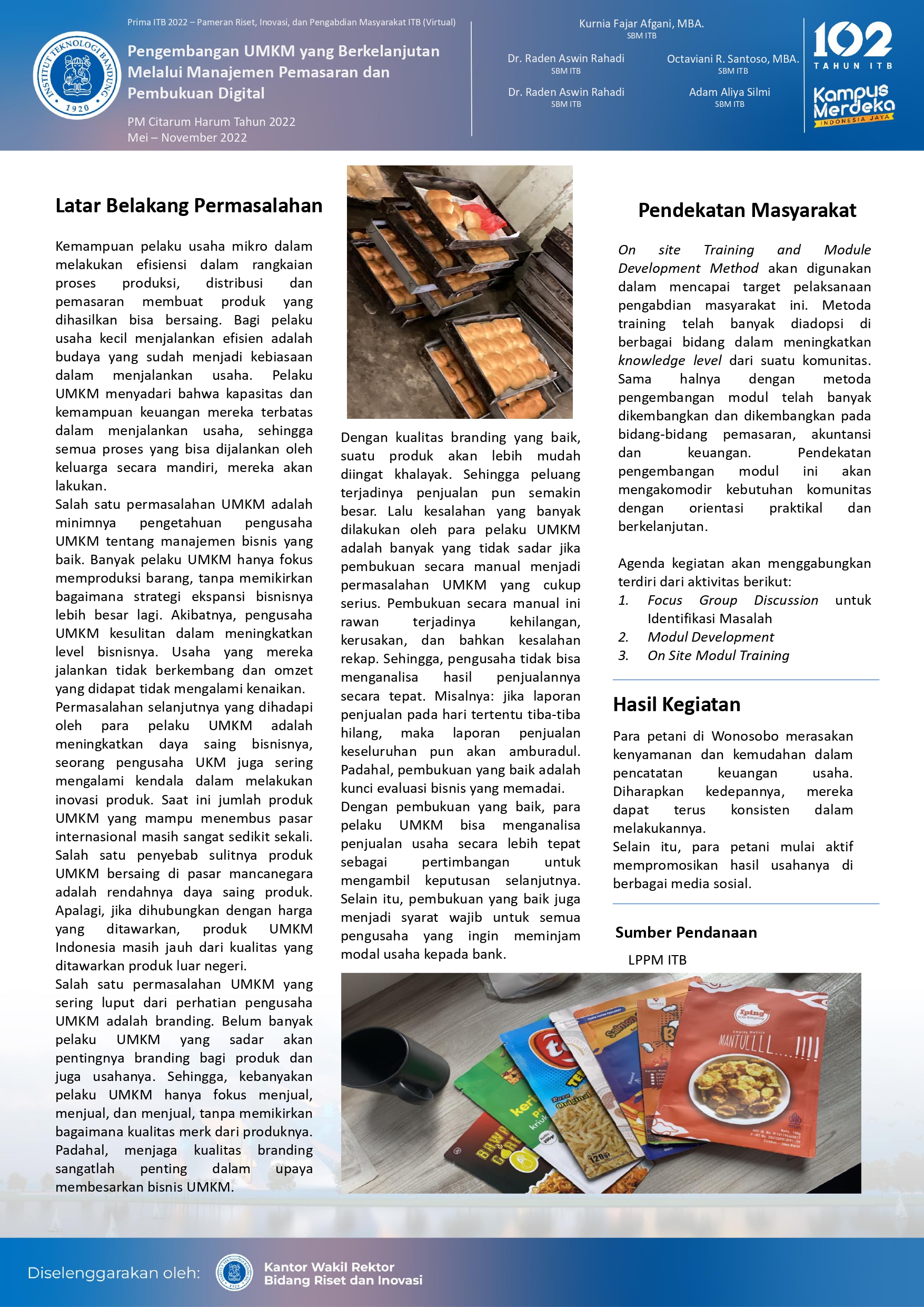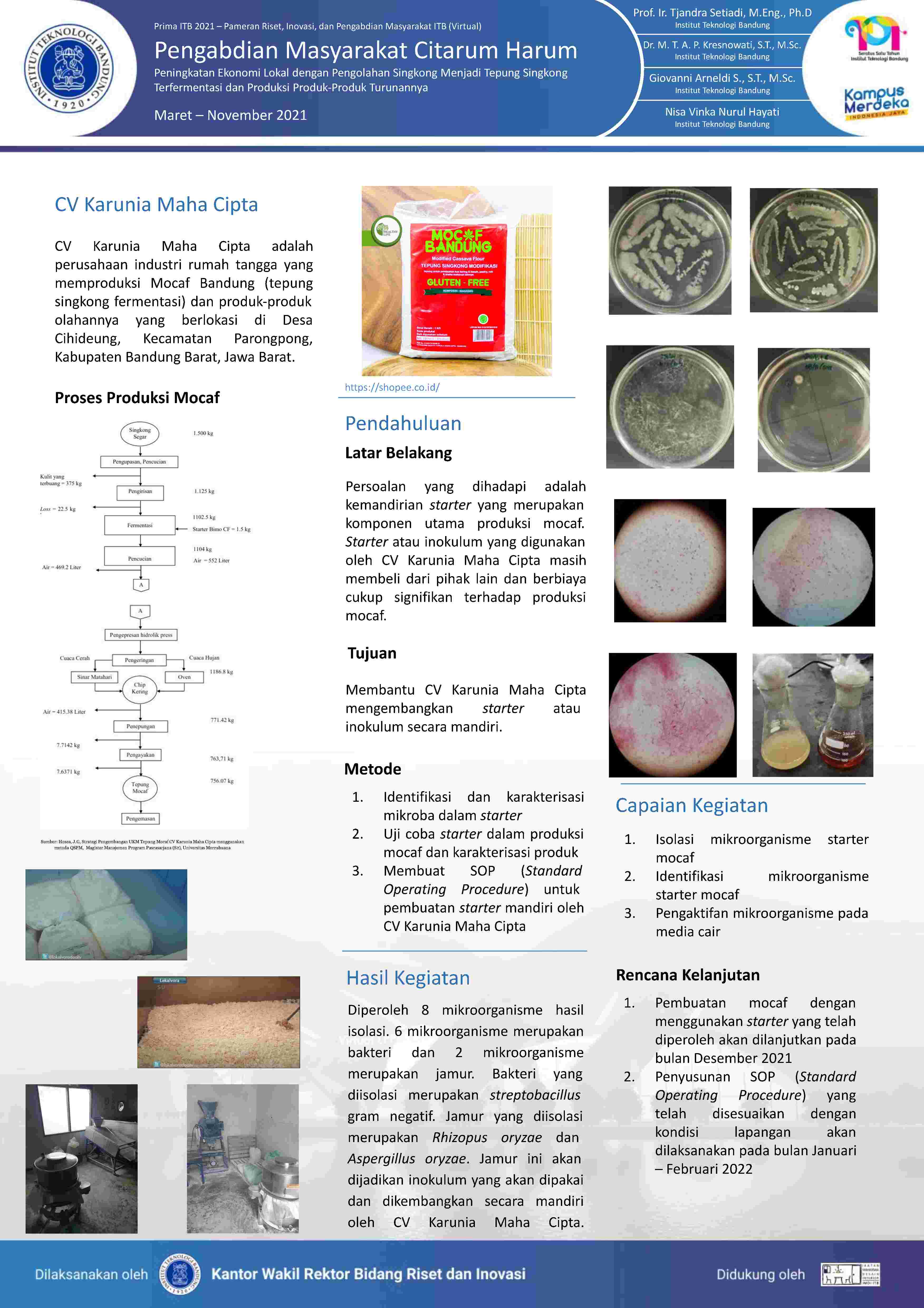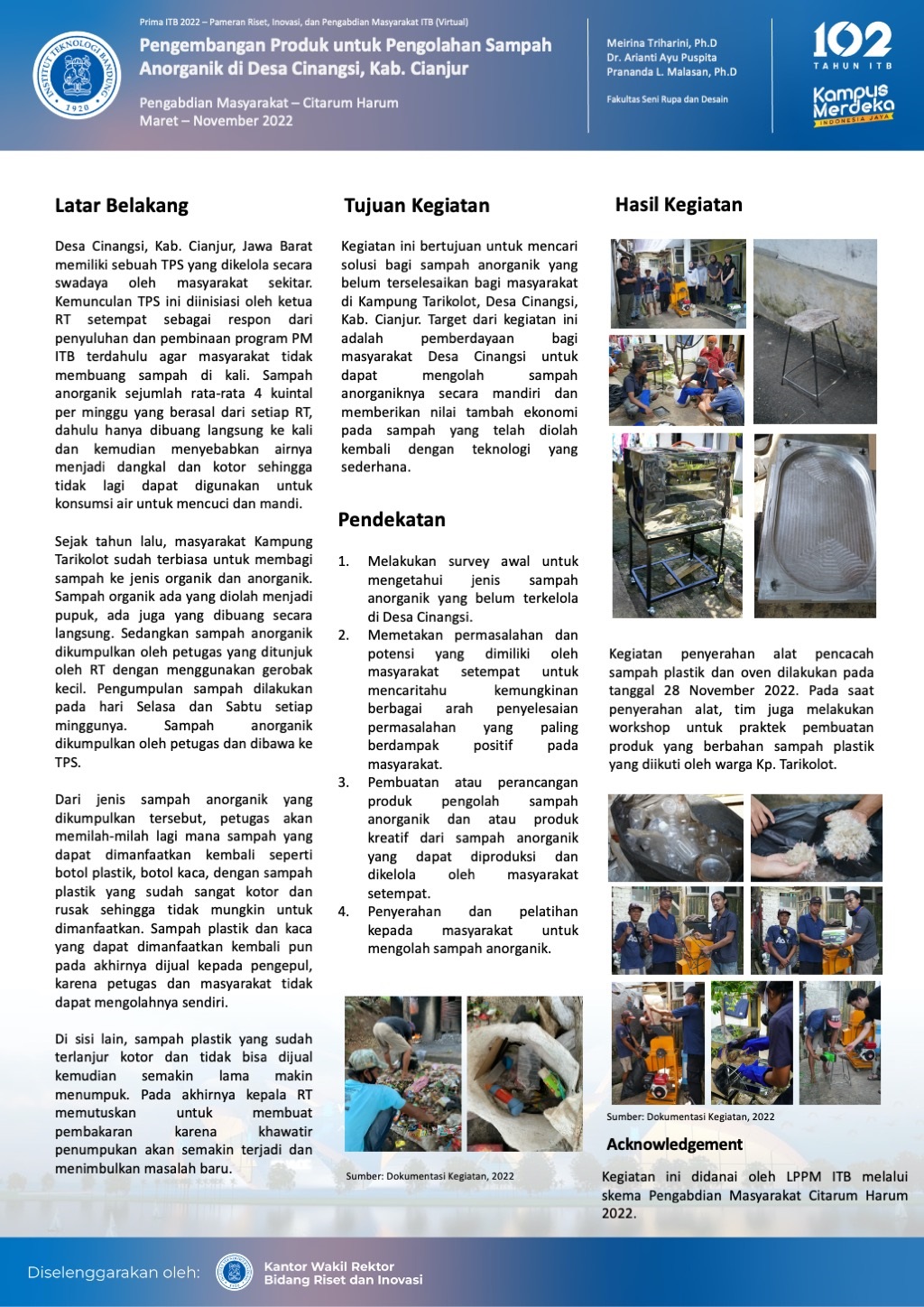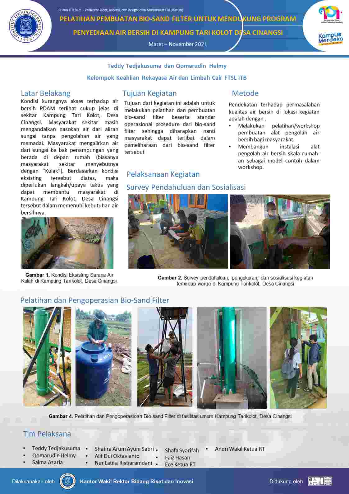 Kegiatan yang dilaksanakan tahun 2021 ini merupakan kelanjutan dari kegiatan yang telah didanai oleh Program Pengabdian Masyarakat ITB pada tahun 2020.