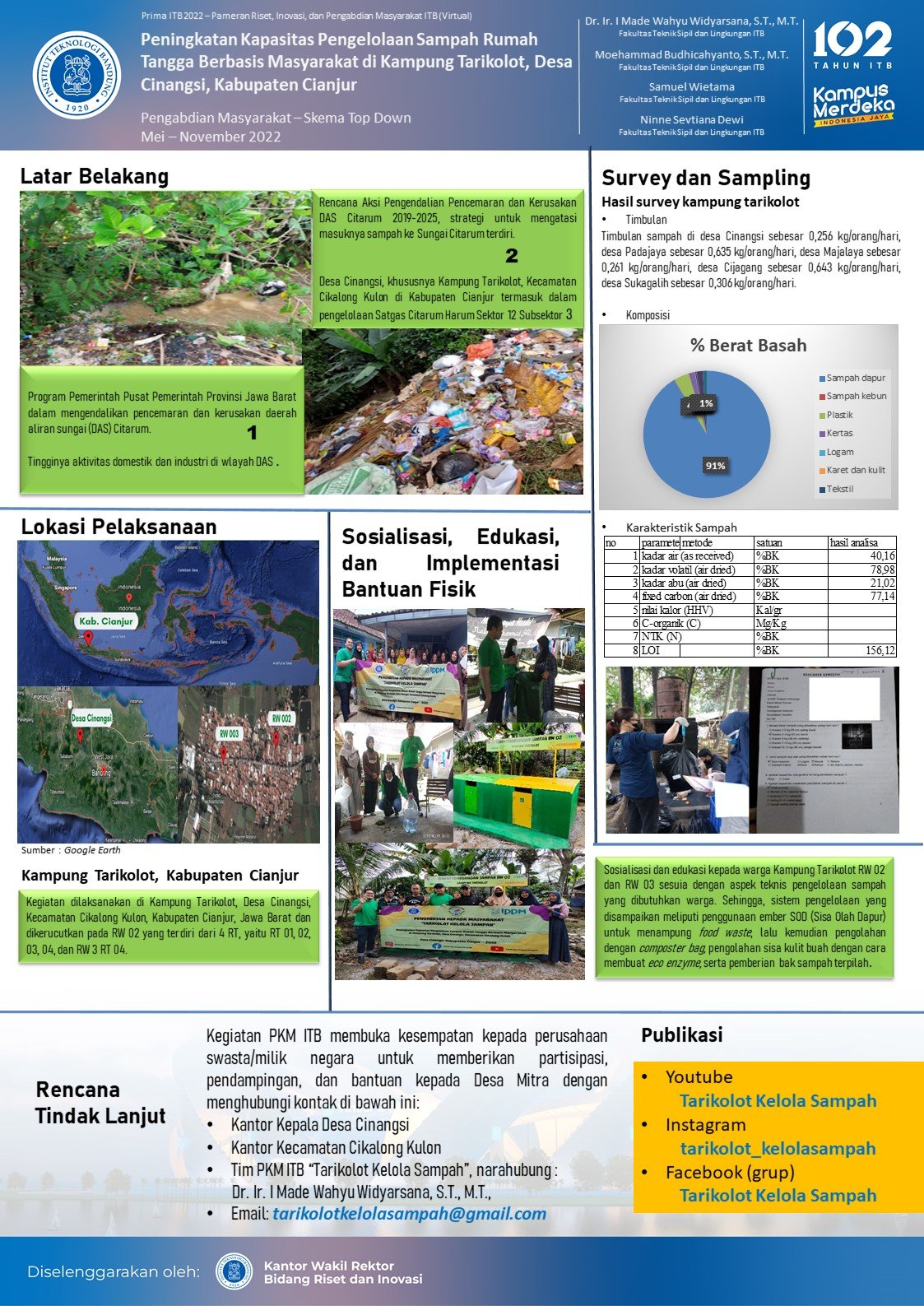 Sosialisasi dan edukasi kepada warga kampung Tarikolot RW 02 dan RW 03 sesuai dengan aspek teknis pengelolaan sampah yang dibutuhkan warga.
