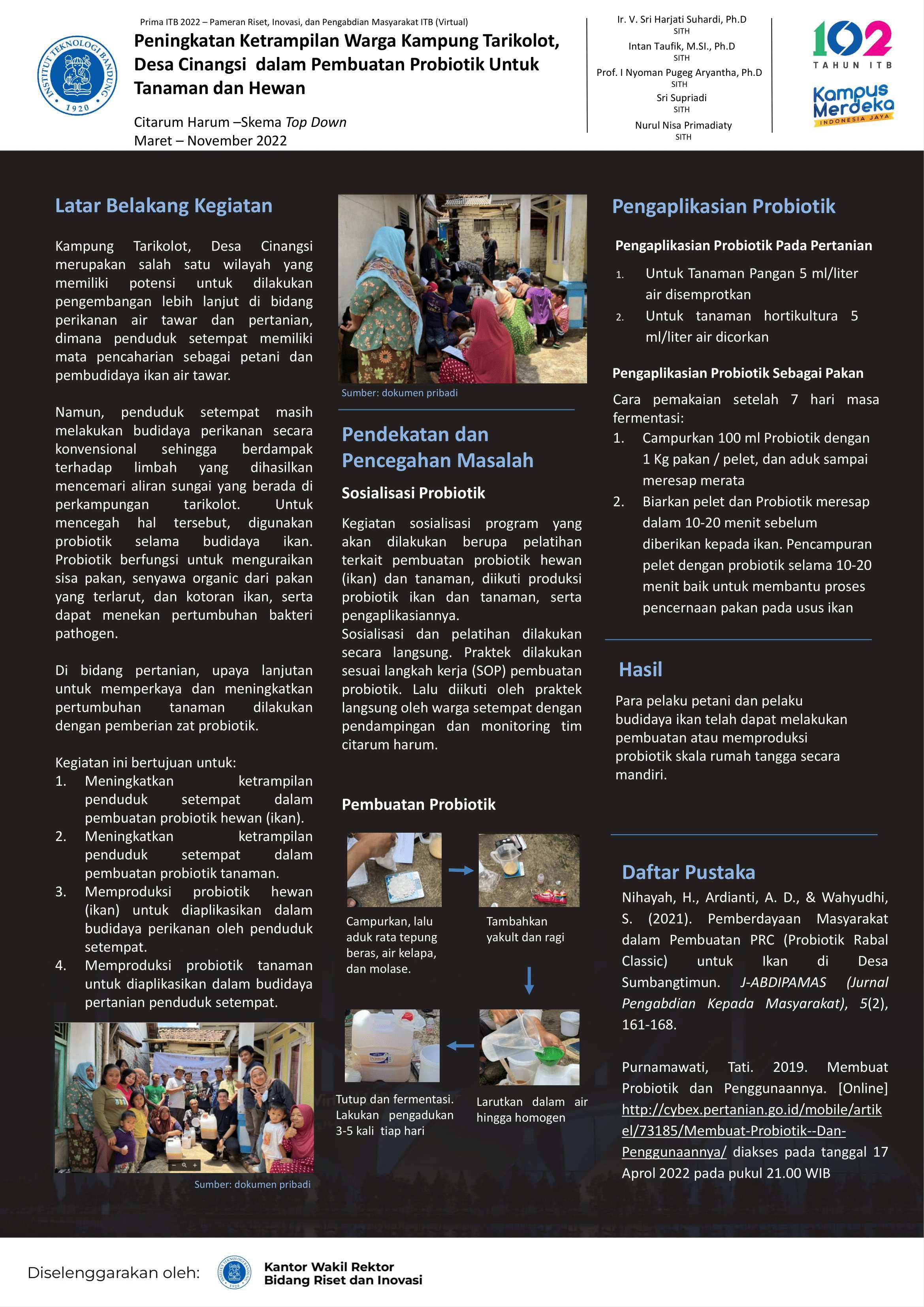 Proposal kegiatan yang diusulkan tahun 2021 ini merupakan kelanjutan dari kegiatan yang telah didanai oleh Program Pengabdian Masyarakat ITB pada tahun 2018 dan 2020.