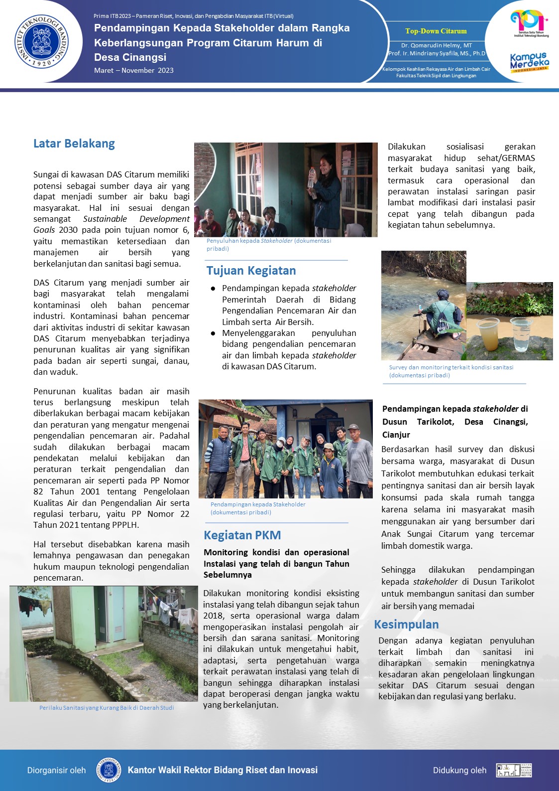 Cukup tingginya pencemaran sumber air yang biasa digunakan warga Desa Cinangsi merupakan permasalahan yang telah ada selama beberapa tahun dan harus diselesaikan agar tidak menimbulkan dampak yang lebih besar.