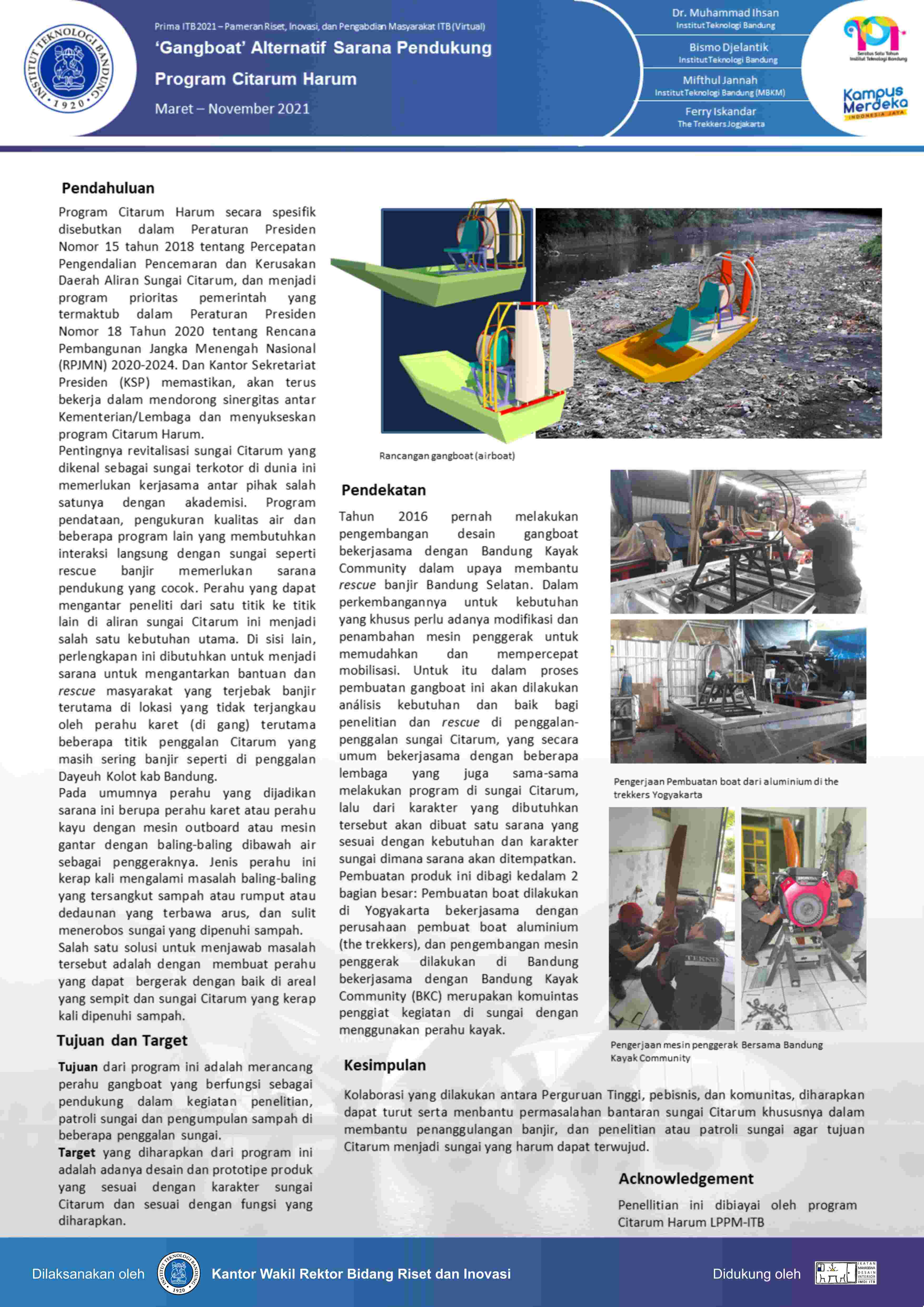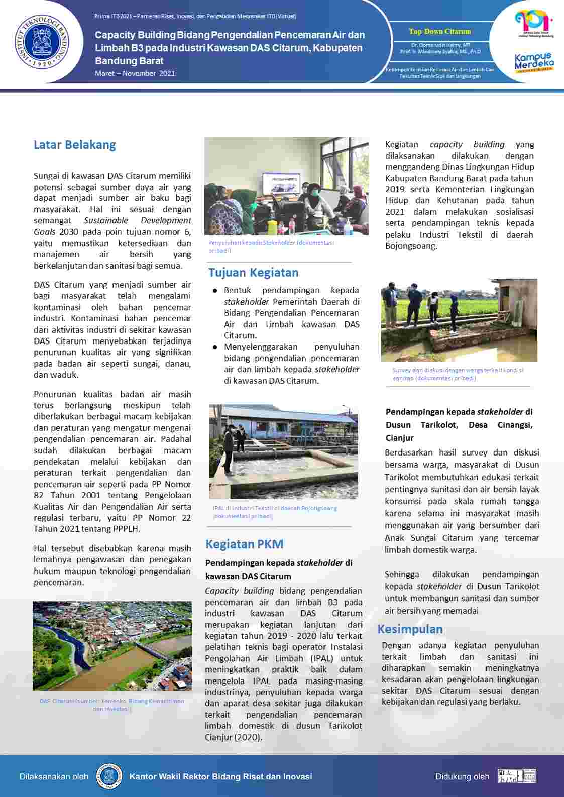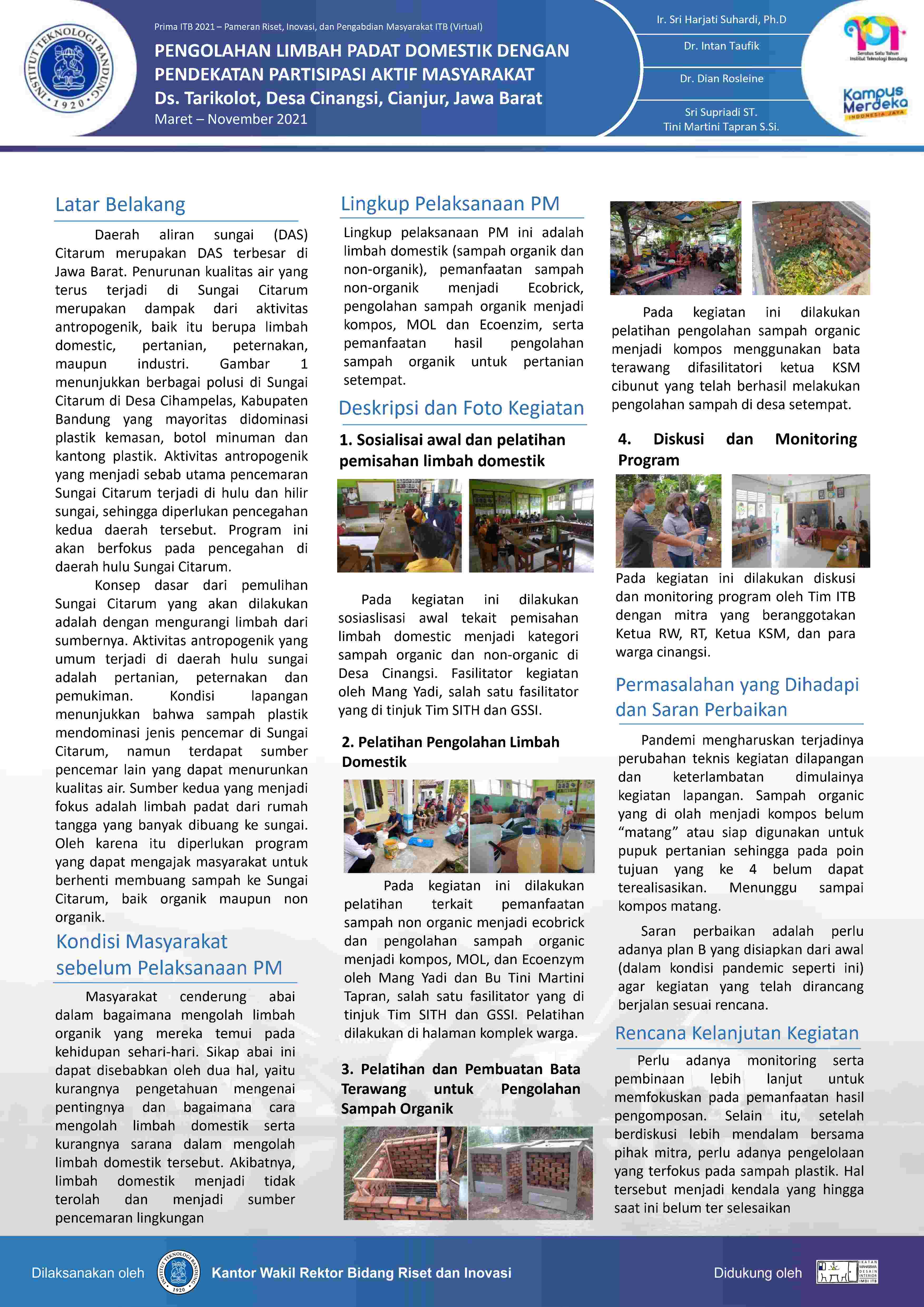 Dalam rangka membantu meringankan masyarakat yang terdampak musibah tersebut, dilakukan Pengabdian Masyarakat ITB - Citarum Harum 2021 ...