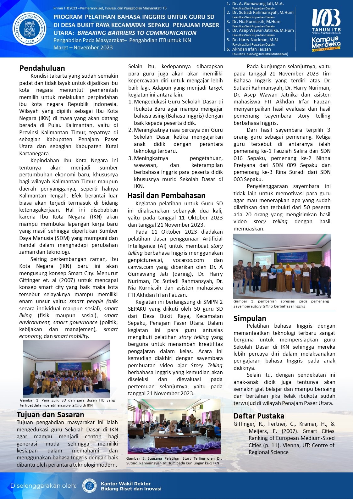Meskipun jauh, tidak menyurutkan semangat Institut Teknologi Bandung (ITB) untuk berkontribusi terhadap pembangunan Ibu Kota Nusantara (IKN), khususnya bagi masyarakat sekitar.