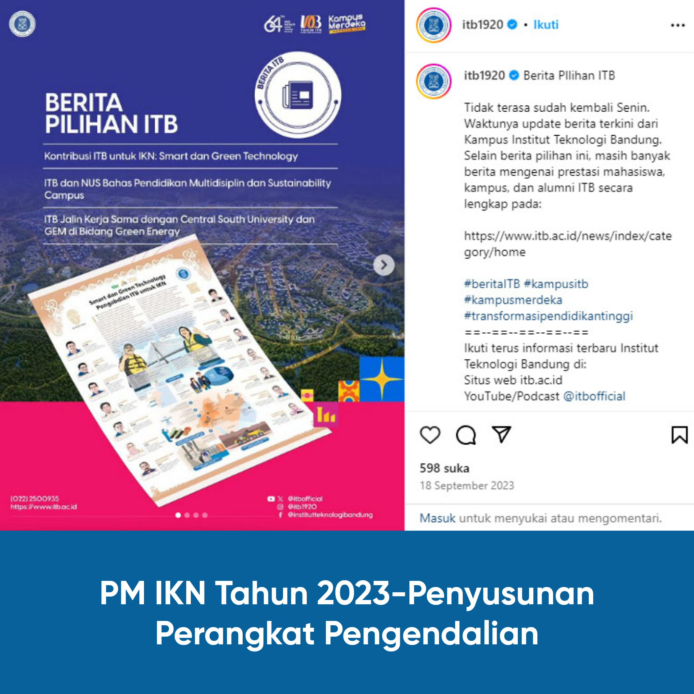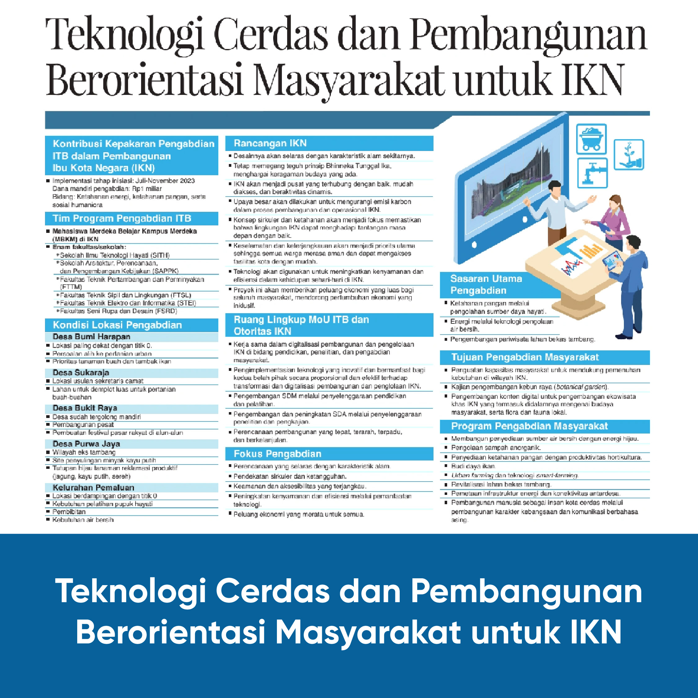 Setelah penandatangan MoU antara ITB dan Otorita Ibu Kota Nusantara (IKN) di bidang pendidikan, penelitian, dan pengabdian masyarakat terkait digitalisasi pembangunan, ITB merespons cepat dengan rencana penyelenggaraan program Pengabdian Masyarakat dan KKN 2023 di IKN.