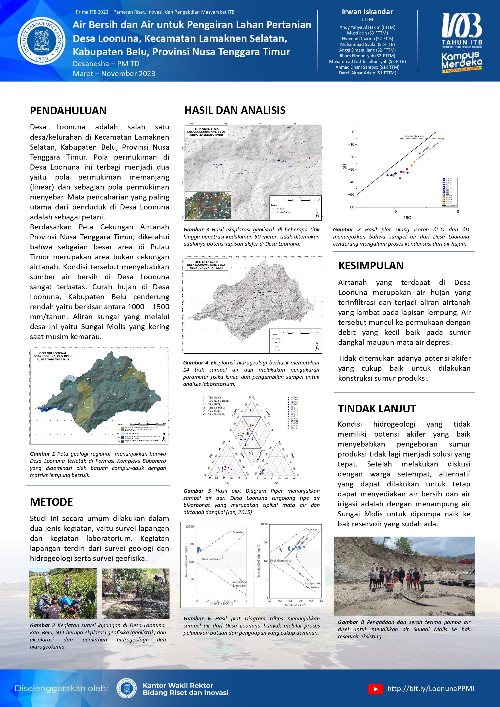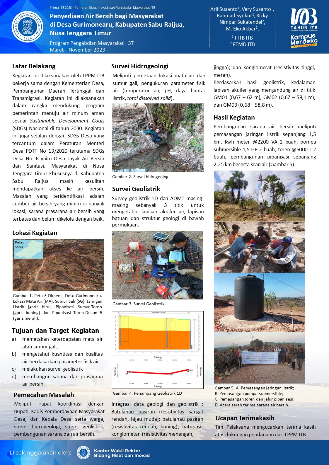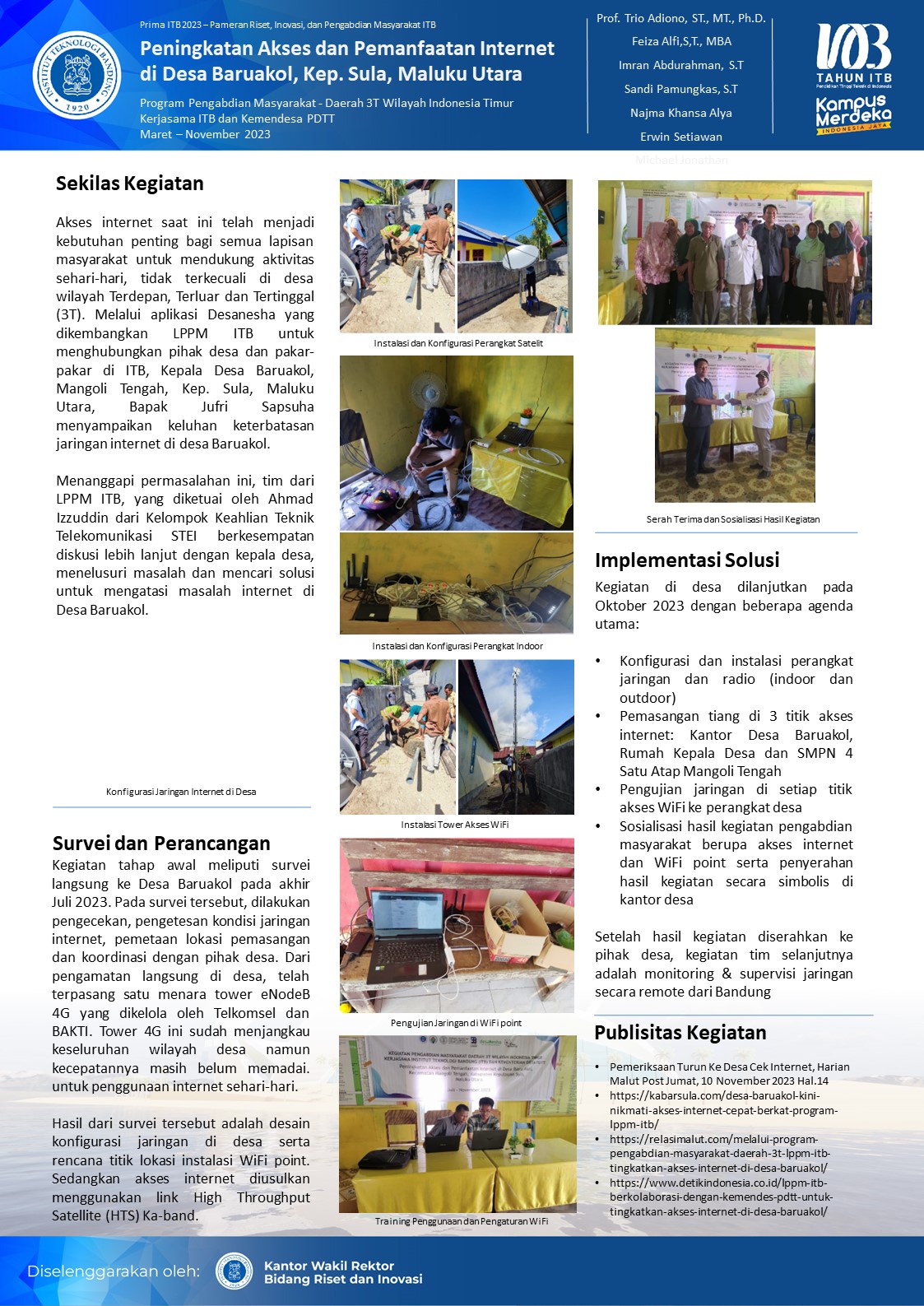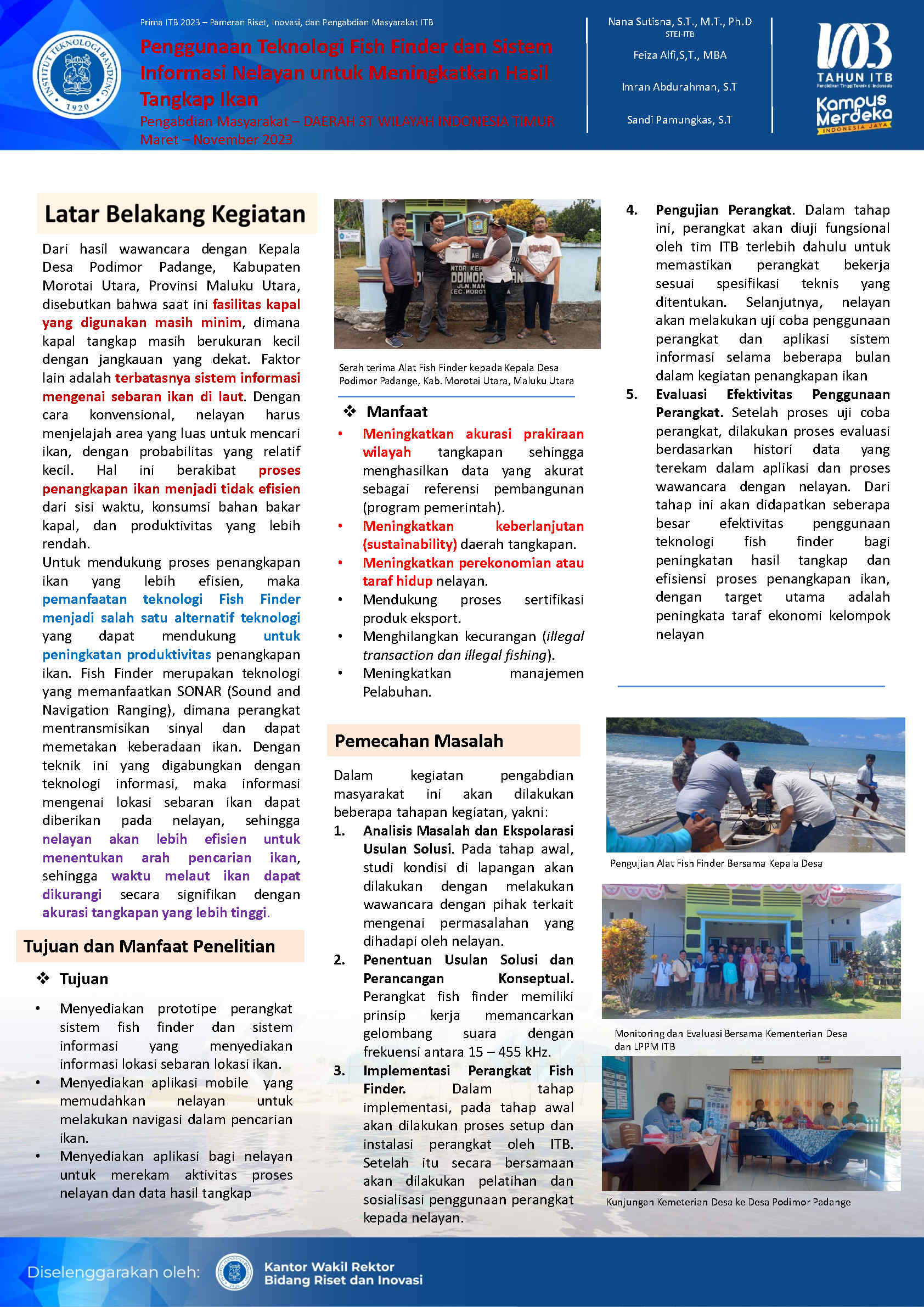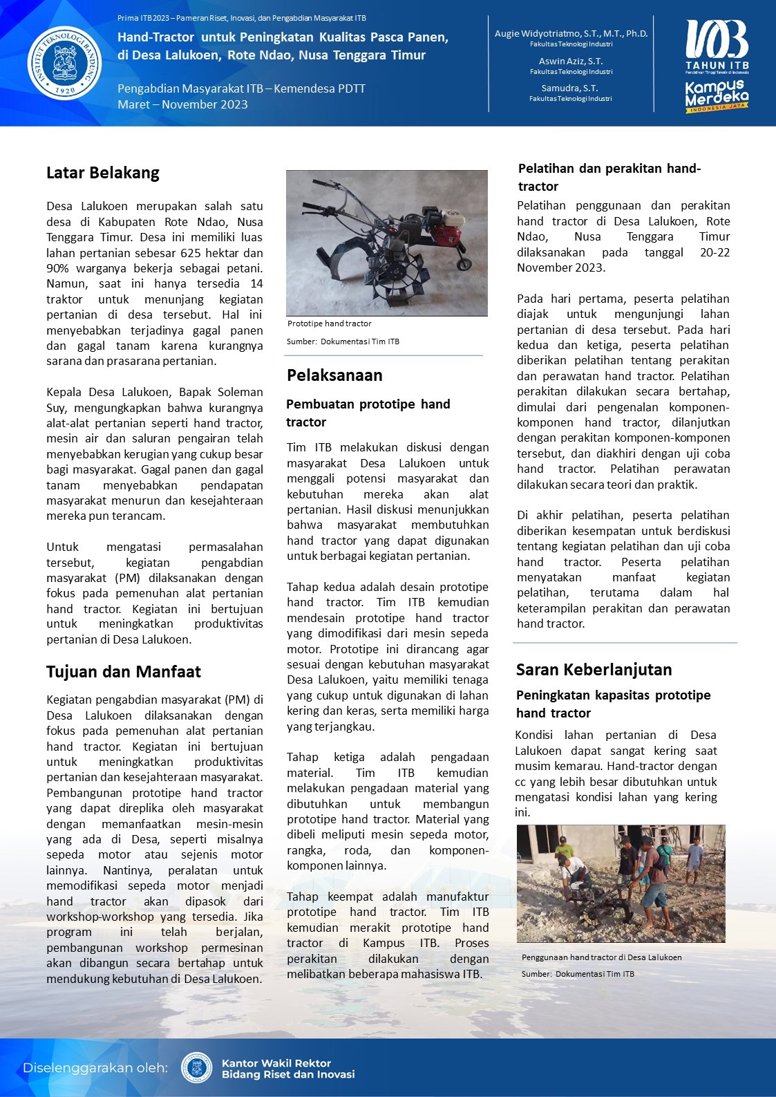 Direktorat Riset dan Pengabdian Masyarakat Institut Teknologi Bandung (DRPM ITB) dengan Kementerian Desa, Pembangunan Daerah Tertinggal dan Transmigrasi (Kemendes PDTT) untuk penerapan teknologi tepat guna di wilayah 3T (tertinggal, terdepan, dan terluar). Sebanyak 30 desa di Nusa Tenggara Timur dan Maluku Utara akan menjadi sasaran. Kategorinya terdiri atas 22 desa tertinggal dan 8 desa sangat tertinggal.