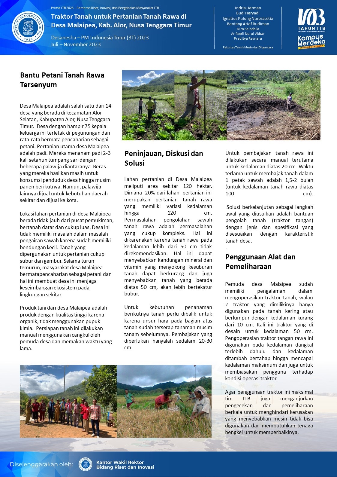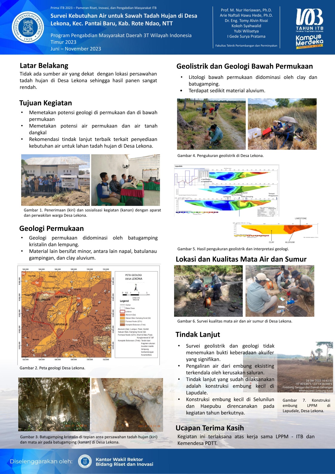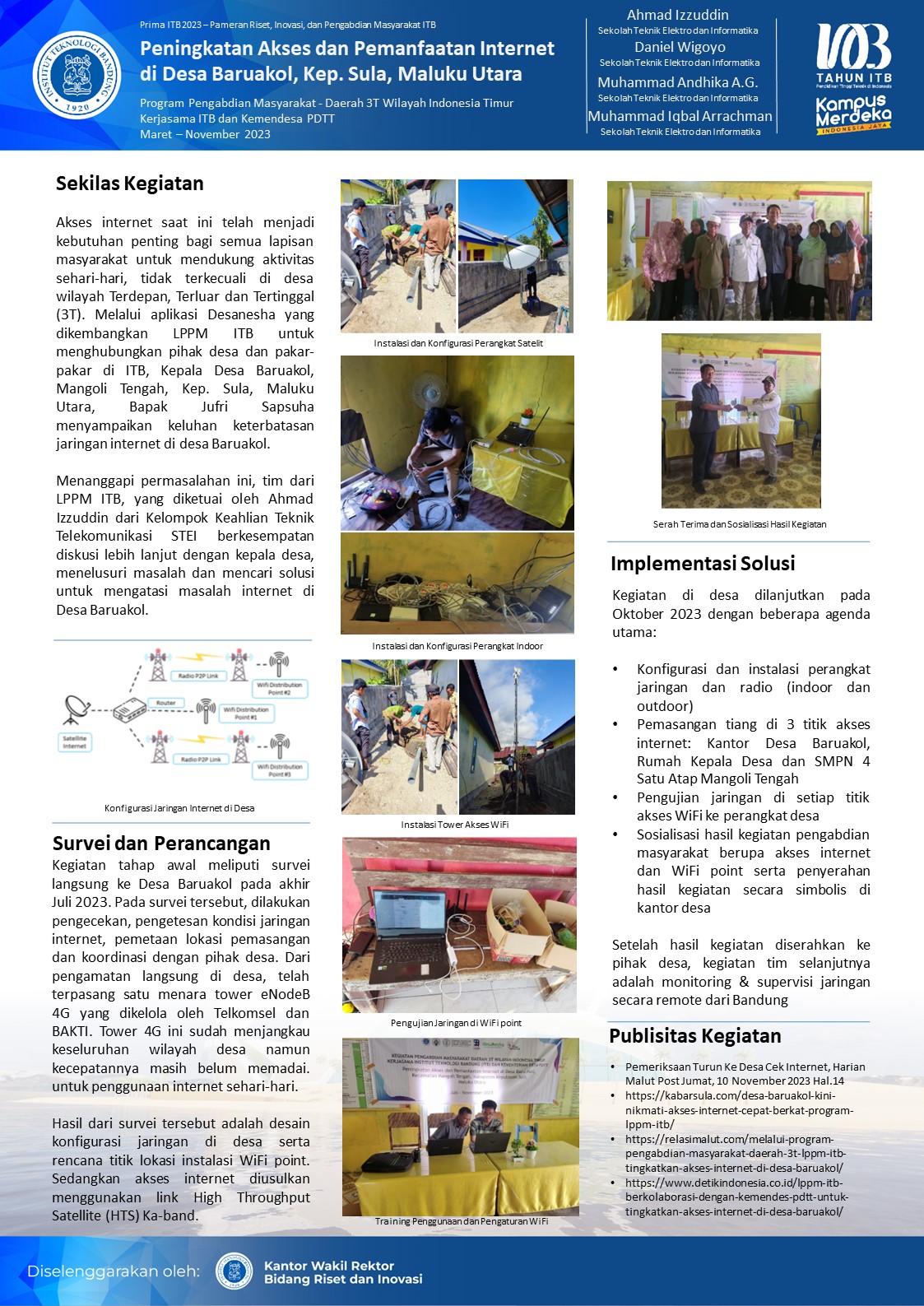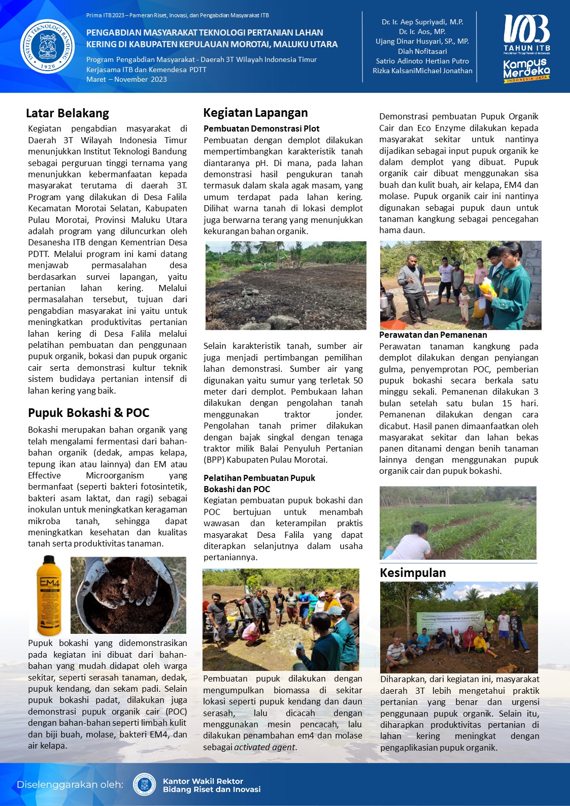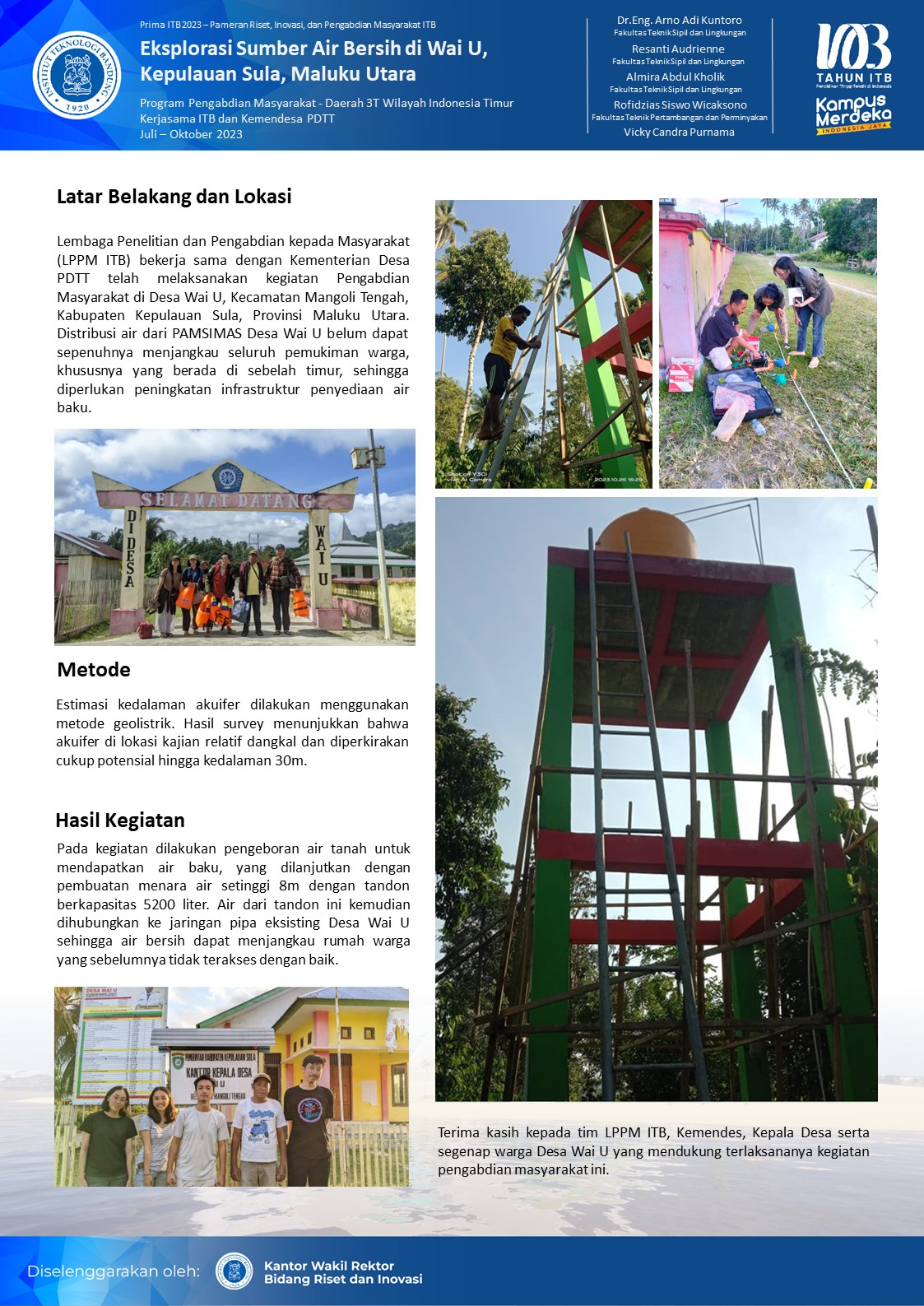 Direktorat Riset dan Pengabdian Masyarakat Institut Teknologi Bandung (DRPM ITB) dengan Kementerian Desa, Pembangunan Daerah Tertinggal dan Transmigrasi (Kemendes PDTT) untuk penerapan teknologi tepat guna di wilayah 3T (tertinggal, terdepan, dan terluar). Sebanyak 30 desa di Nusa Tenggara Timur dan Maluku Utara akan menjadi sasaran. Kategorinya terdiri atas 22 desa tertinggal dan 8 desa sangat tertinggal.