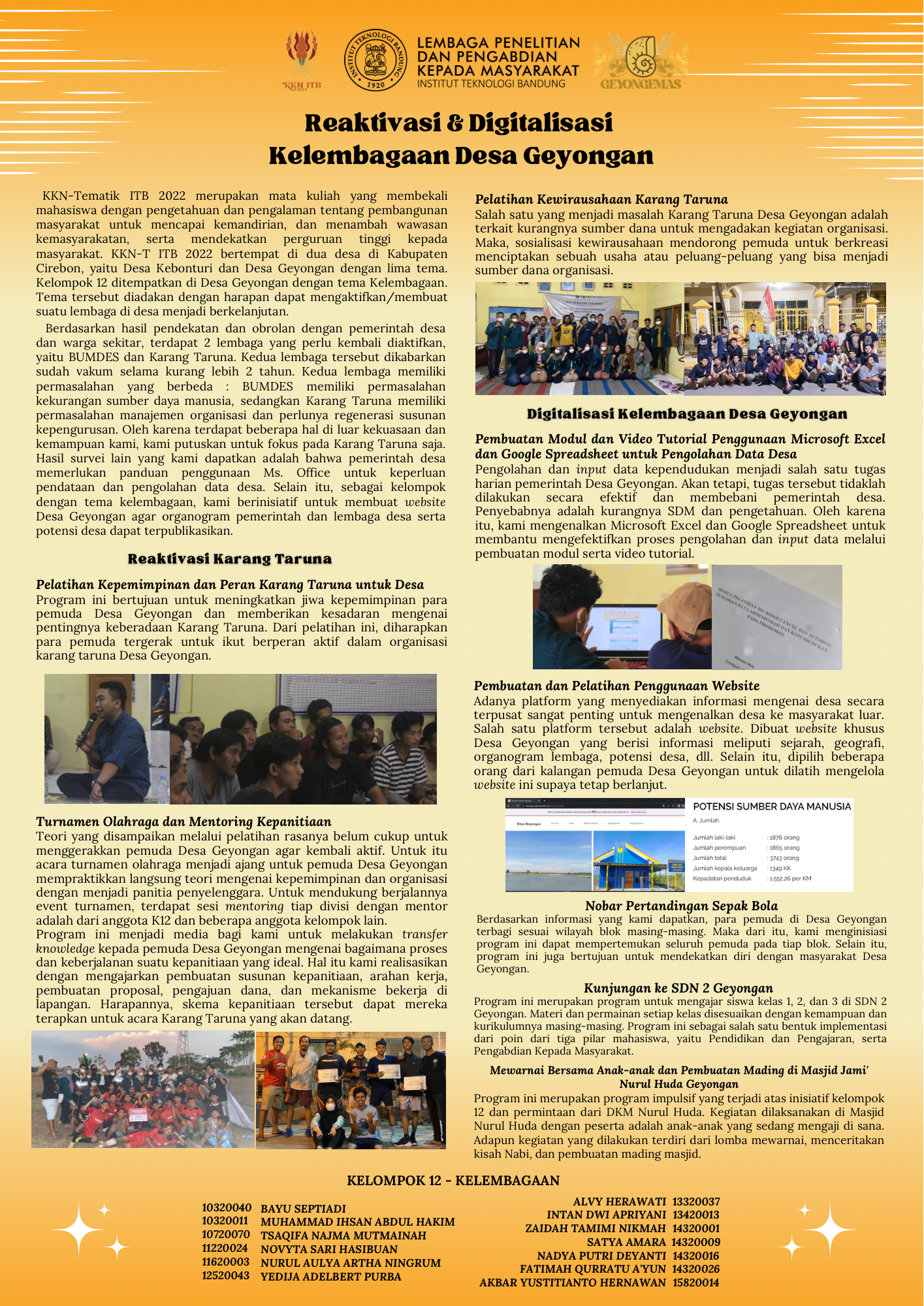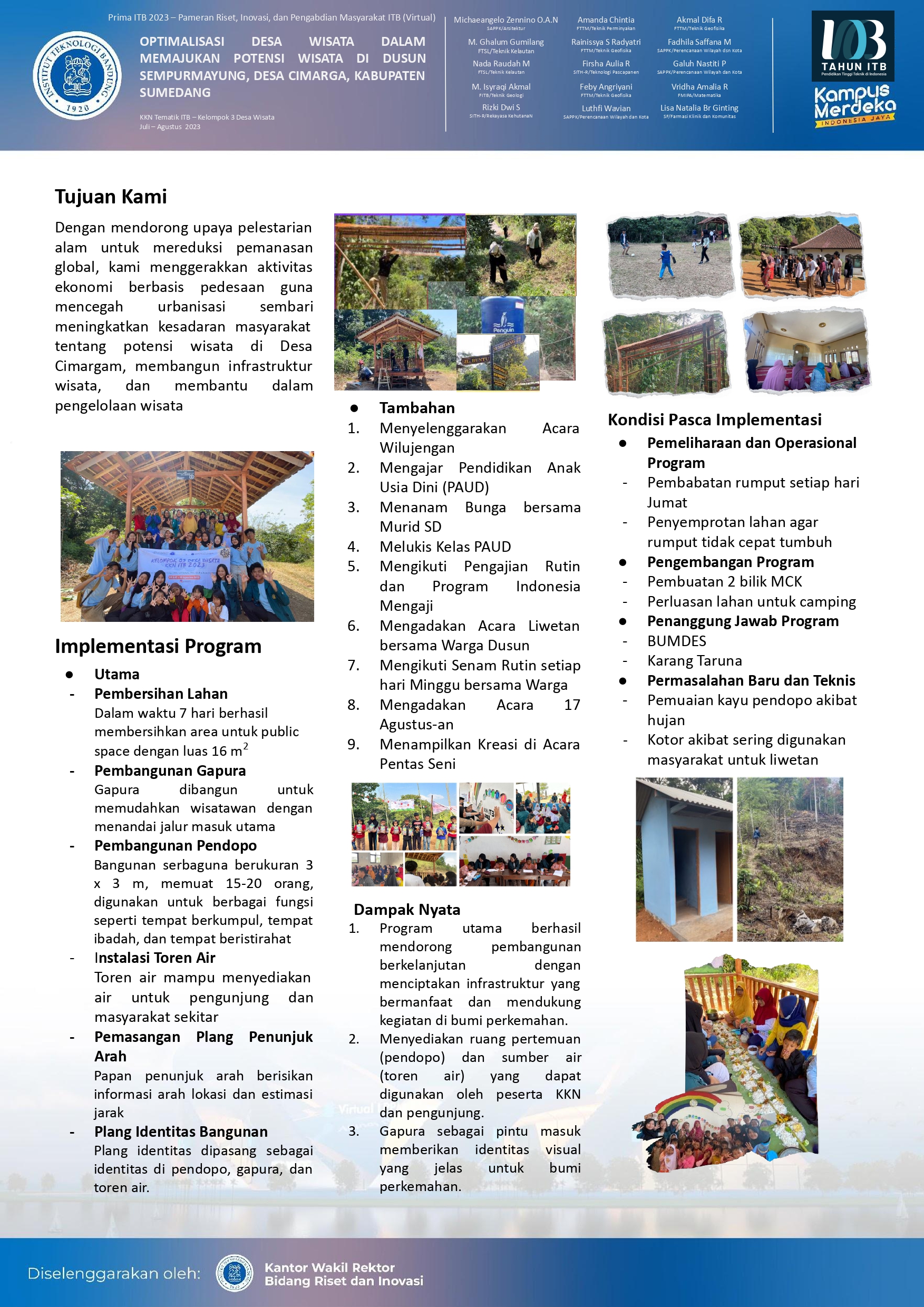 Program Pengabdian Masyarakat oleh Mahasiswa KARSA DESA bertujuan agar mahasiswa dapat meningkatkan kemampuan sinergi lintas disiplin ilmu bersama para dosen serta masyarakat dalam mengidentifikasi dan menghasilkan solusi atas permasalahan nyata yang dihadapi masyarakat. Pelaksanaan Program oleh mahasiswa ini di rekognisi melalui mata kuliah Merdeka Belajar Kampus Merdeka (MBKM) berupa Kuliah Kerja Nyata Membangun Desa. Program ini memfasilitasi gagasan kelompok mahasiswa sarjana S-1 dalam menerapkan pemikiran dan karya inovatif yang berlandaskan budaya ilmiah unggul yang dapat dimanfaatkan langsung di tengah masyarakat berbasis sains, teknologi, seni, humaniora dan bisnis yang dihasilkan dalam bentuk karya tepat guna.